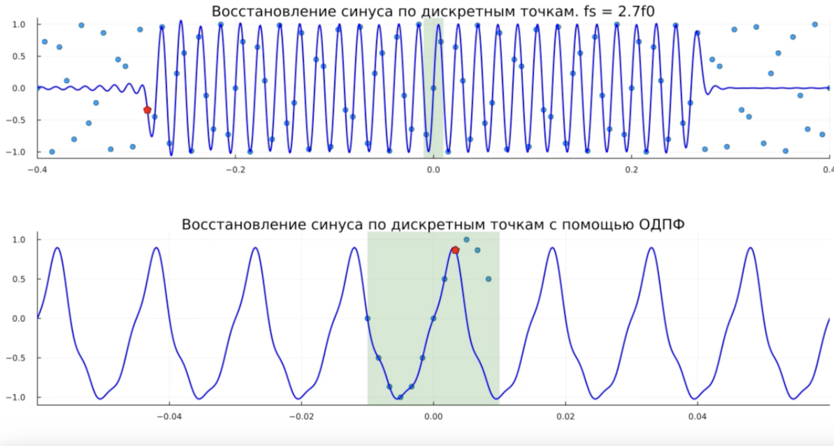 В примере совсем немного кода, много базы (про теорему Котельникова, преобразование Фурье и ядро Дирихле) и еще больше практических выводов. Если будут вопросы — задавайте их автору прямо в комментариях под примером.