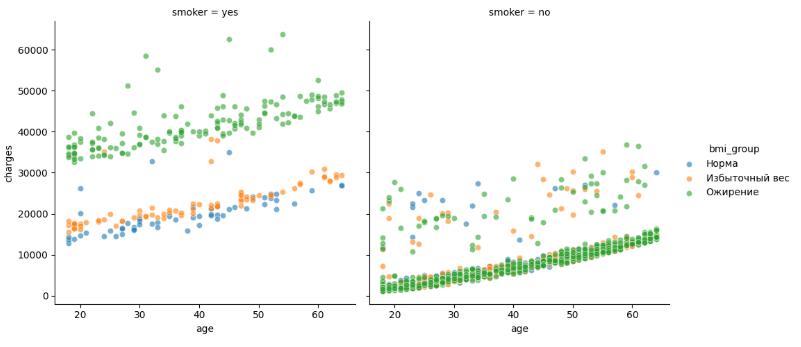 – Курение — главный фактор (корреляция 0.66): у курящих расходы в разы выше.